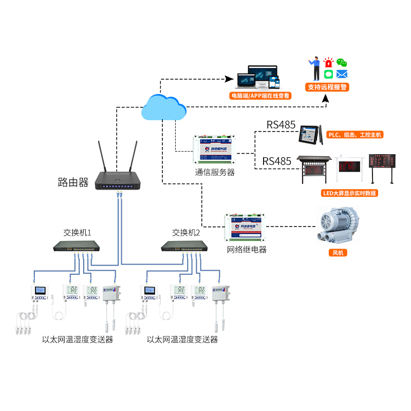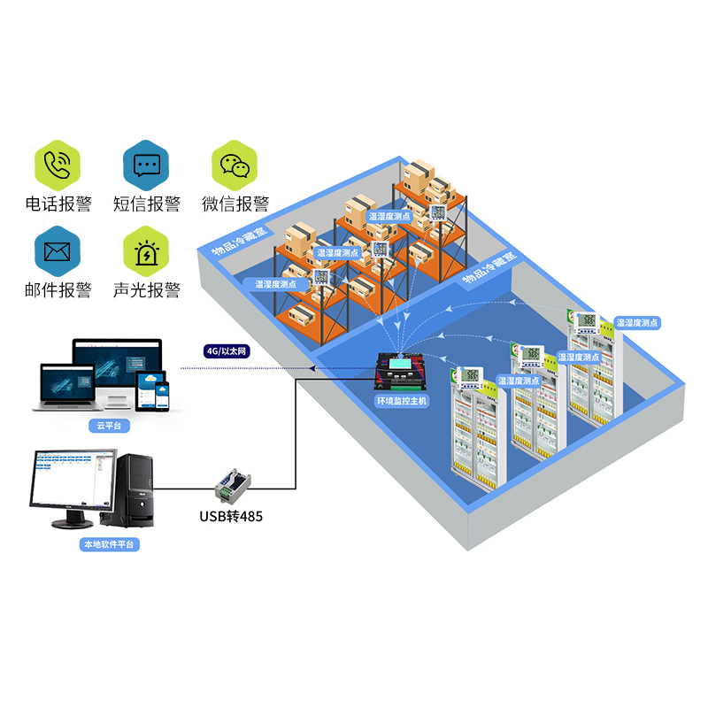 WIFI型超高/低温变送器采用PT100高精度测温探头,可连接2.4GHz/5GHz频段的WIFI无线网络,支持DNS动态域名解析,提供本地/云端软件平台,实现温湿度集中监控。产品采用大屏液晶显示,具有温度上下限双控,限值自由设置,温度凭密码校准等功能,内部集成报警模块(蜂鸣器或继电器),可实现高、低温报警。