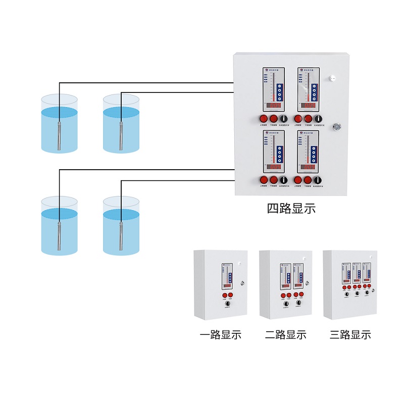 消防液位显示器还 支持多路液位传感器显示在同一箱体上(至多 4 路),可以实现一对多的就地显示情况,有效降低巡查成本,提升巡查效率。